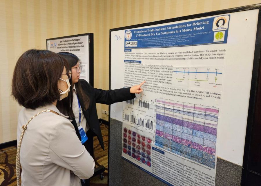 盛美與中山醫學大學合作之研究計畫,探討日常用眼族群之舒適感受與水潤狀態維持,相關研究成果已於越南舉辦之 International Society for Nutraceuticals and Functional Foods(ISNFF,國際營養保健與機能性食品學會) 國際研討會中進行發表與分享。