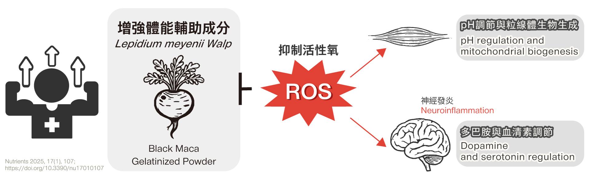 研究指出,黑瑪卡補充與乳酸(BLA)及發炎指標(如 IL-6、TNF-α)調節具有關聯性,可作為訓練後恢復期的營養支持之一。